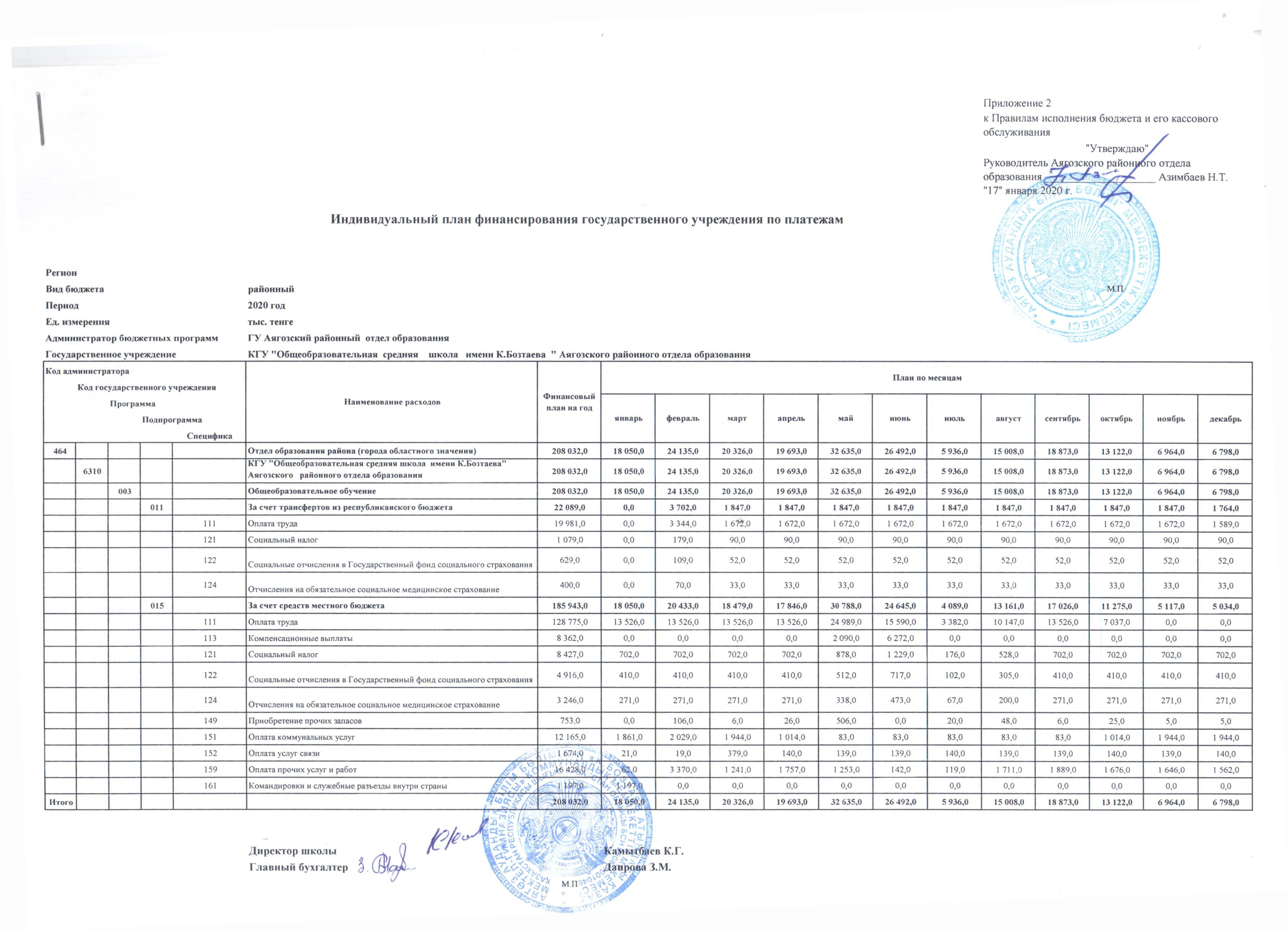 Открытый бюджет проектного офиса КГУ Казахская школа имени К.Бозтаева