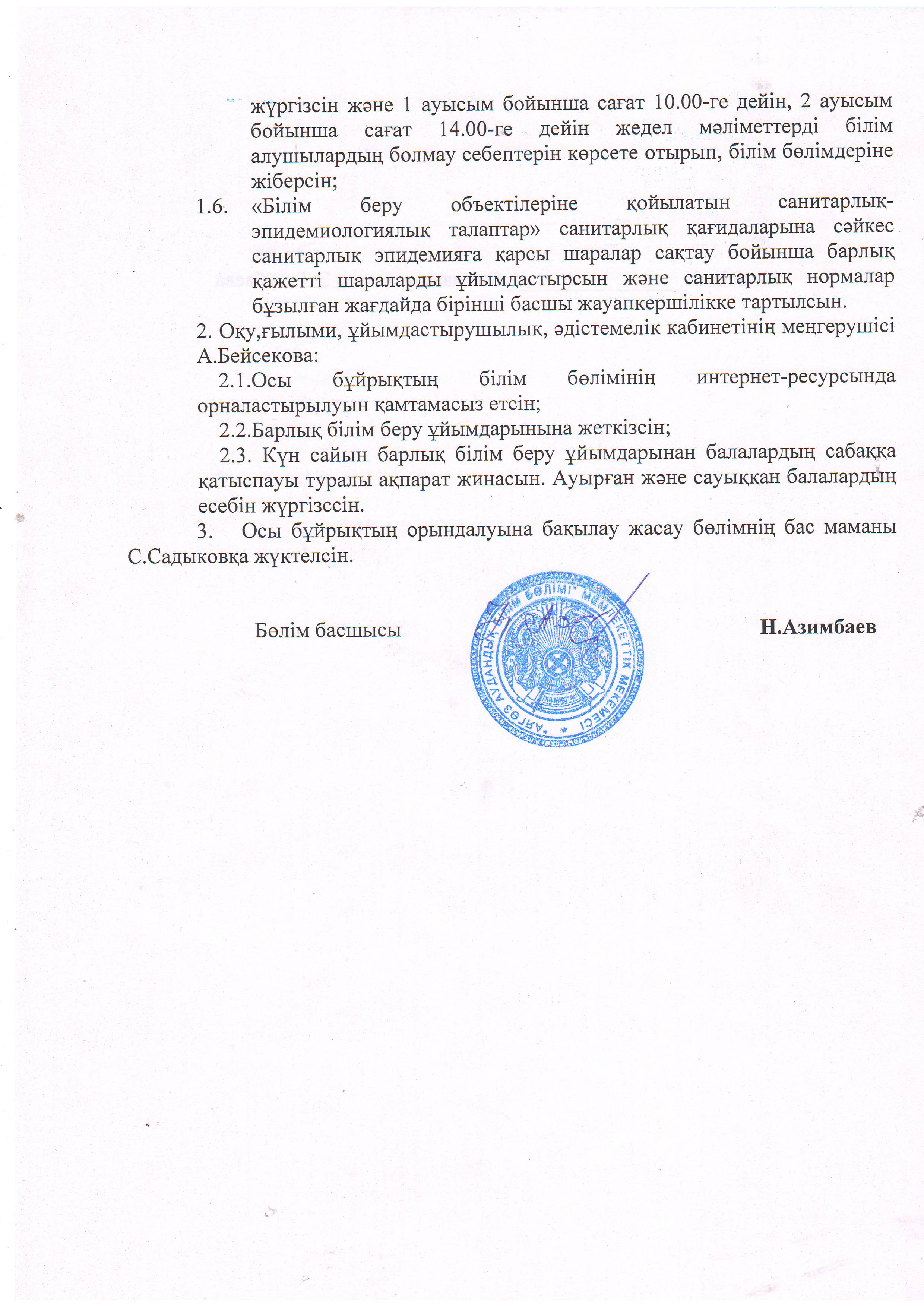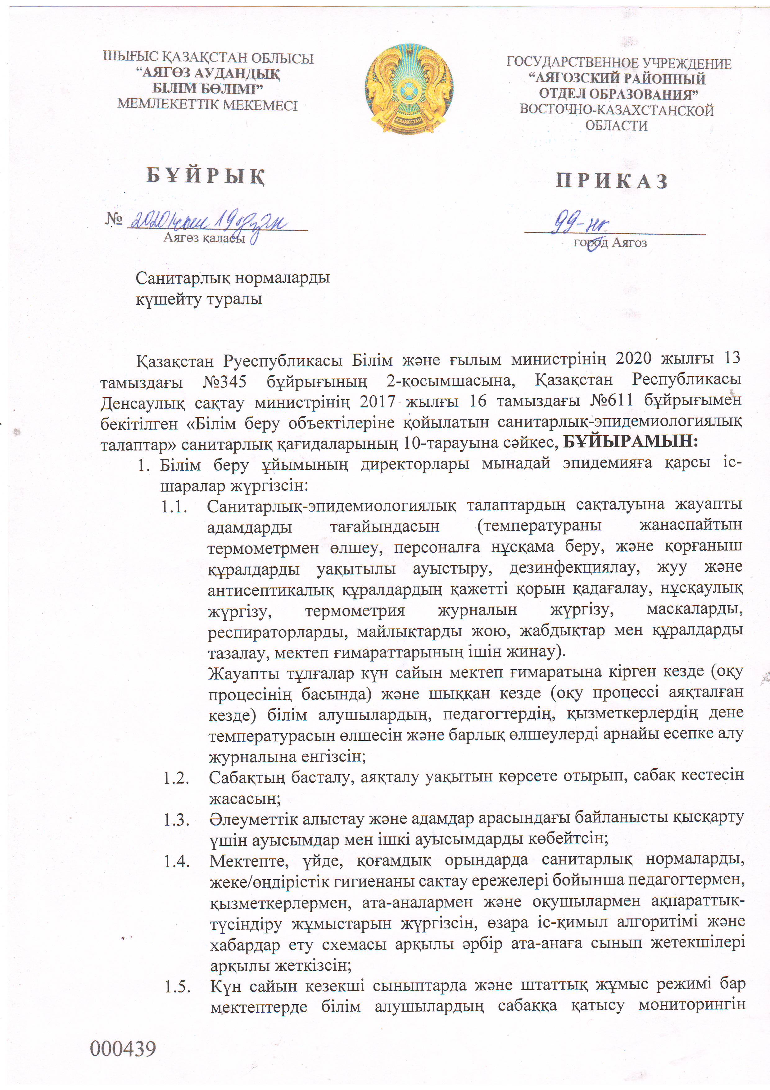 / Карантин кезіндегі оқушылармен білім мекемесіне санитарлық-эпидемиологиялық қойлатын талаптар